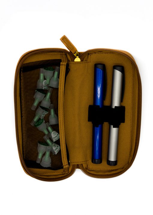 The Pen Clutch offers two loops that can accommodate two insulin pens, there is also space for needles in the large pocket with zipper.